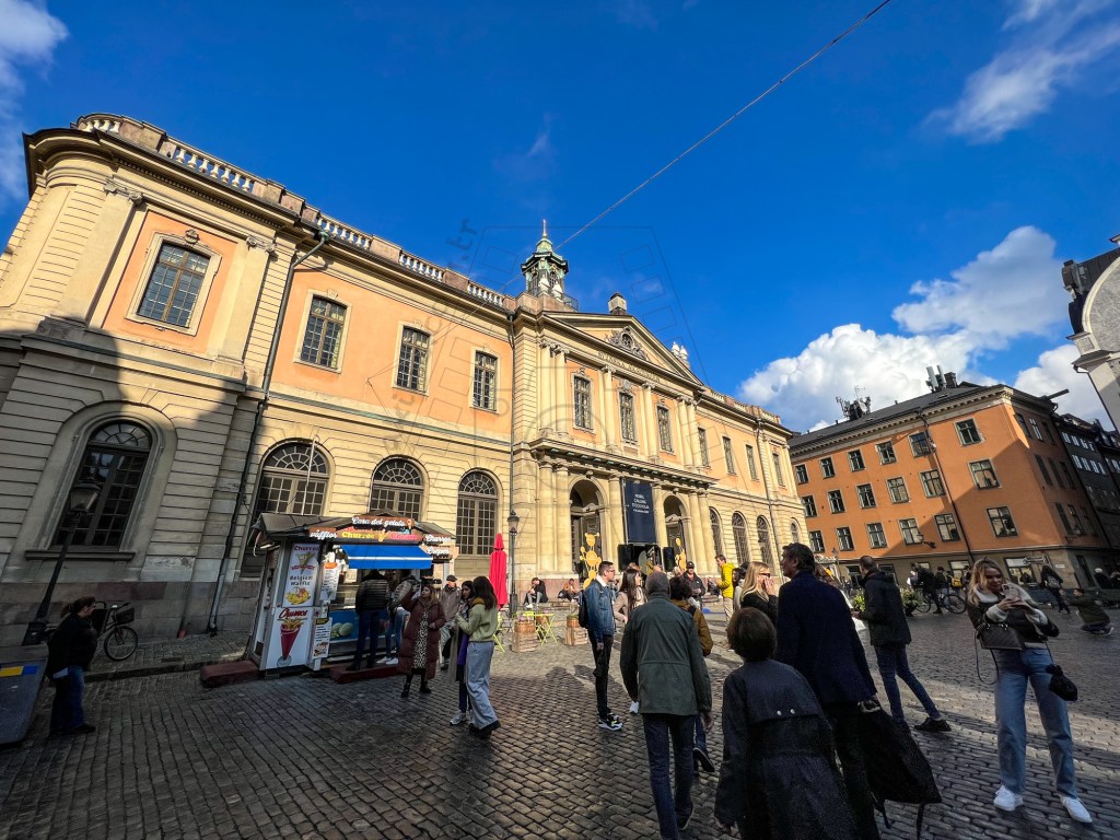 There are more attractive buildings in Gamla Stan, the Old Town of Stockholm. The Nobel Prize Museum is there, with some multi-colored buildings.